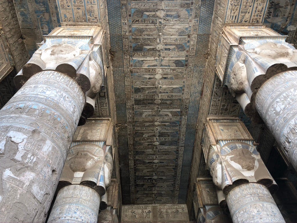 The Temple of Hathor is an example of traditional Pharaonic architecture decorated by a hypostyle hall leading to a sanctuary and supported by eighteen Hathor-headed columns. The temple was built and rebuilt across centuries. It was initially built during the Ptolemaic period with major alterations and expansions under Greek and Roman rule. It is one of the best-preserved temples in Egypt, standing tall, with crisp carvings and vibrant colors. Its ceilings and walls are famously decorated with astronomical scenes, including the celebrated Dendera Zodiac, which shows how Egyptians mapped the sky long before telescopes–maybe they were stargazers too, or perhaps the world’s first horoscope enthusiasts. Millennia ago, Egyptians pioneered in many fields, including construction, medicine, mathematics, irrigation, and astronomy.